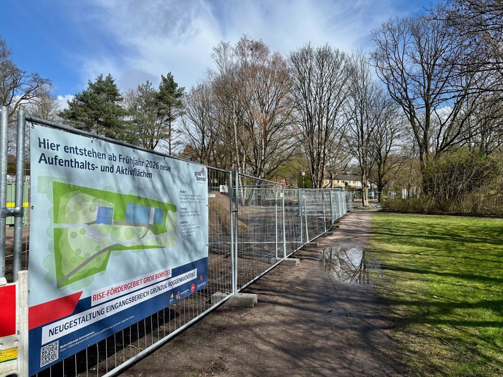 Die Umgestaltung des Grünzugs Roggenbuckstieg hat begonnen. Der Eingangsbereich des Grünzugs (südlich Beerboomstücken) wird zu einer Aufenthalts- und Aktivfläche für Jugendliche umgestaltet. Die Planung basiert auf einer vor zwei Jahren durchgeführten Beteiligung mit Jugendlichen und Nutzer:innen des Grünzugs. Geplant sind ein neuer verkürzter Bolzplatz, eine Calisthenics-Anlage, ein Streetball-Feld mit Graffitiwänden sowie Tischtennisplatten. Ergänzt wird das Angebot durch neue Sitzmöglichkeiten wie eine Tribüne, Holzpodeste und Sitzmauern, der bestehende Pavillon wird zurückgebaut.
